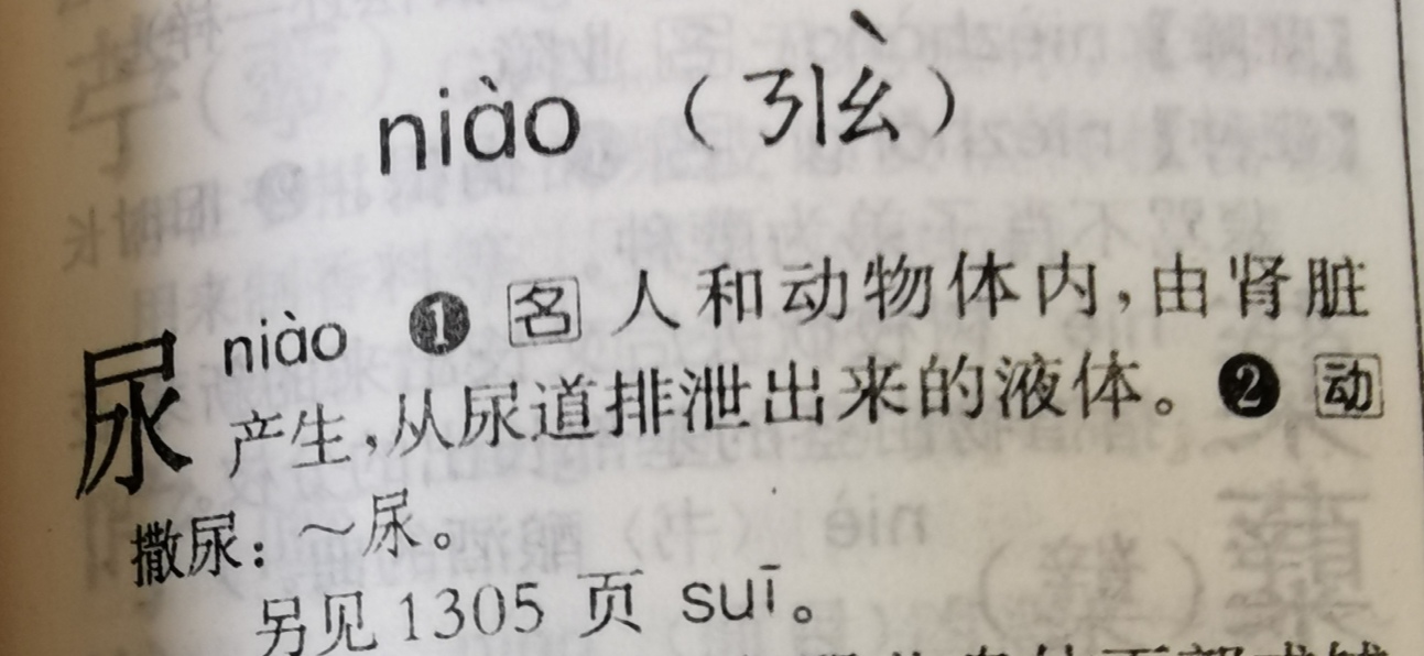 记者查询《现代汉语词典》发现,“尿”字确实有这两个读音。“niào”的读音下有两个解释,一个为名词,即“由肾脏产生,从尿道排泄出来的液体”;另一个为动词,即“撒尿”。在“suī”的读音下只有作名词,义同“尿”(niào)。
