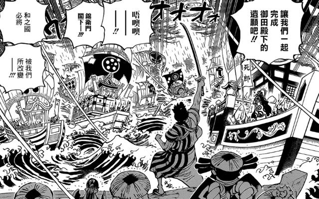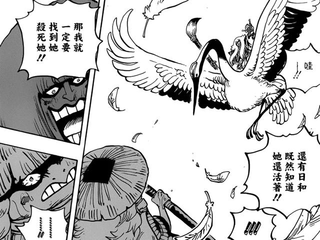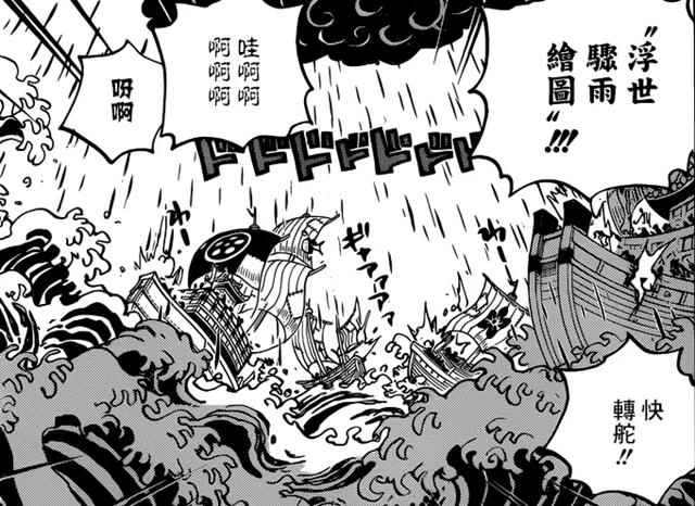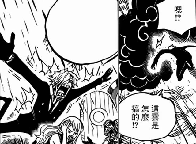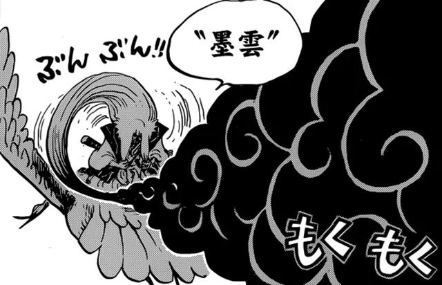 勘十郎抓着桃之助,乘着鹤飞走了,但是也不是没人阻止。山治使用月步飞起,罗宾手势摆起打算使用能力,乌索普则打算狙击。然而,勘十郎用头发制造出了“墨云”,而“墨云”则释放出了“墨之箭”。