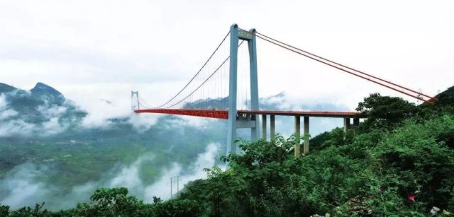 北盘江特大桥2012年开工建设,2016年12月29日正式通车,由云贵两省合作共建,全长1341.4米,桥面到谷底垂直高度565米,相当于200层楼高——这也是世界最高的大桥。
