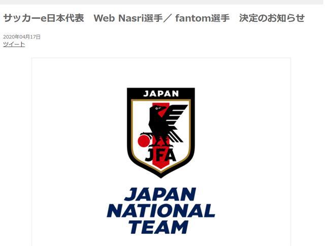 日本足协于4月17日宣布,日本e足球国家队正式成立,Web Nasri和fantom两位选手将代表日本出战5月22日于丹麦开战的“FIFA电竞国家杯”。