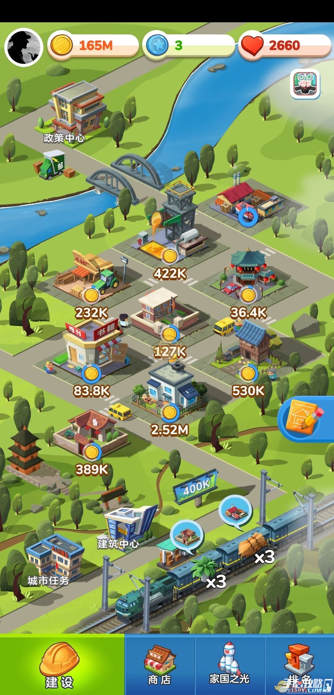 游戏节奏很简单,假设你目前所有的星级最高为一星,那么首要目标就是平均的升级,每一个建筑与做火车任务。建筑物每25有一个奖励,初期奖励都兑换20的红包最划算。
