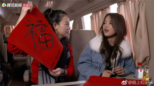 曾宝仪在旁边圆场,杨超越努力回忆。没办法还是拿出了手机看福字到底长什么样杨超越写错福字,不小心截图了一个曾宝仪憋笑的图。