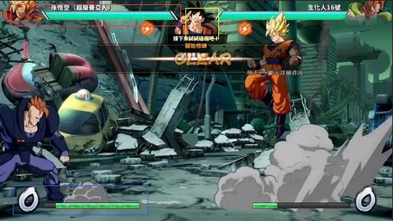 红框代表你(敌人)的血条,打完就挂(或换人),黄框代表时间,归0就按血量决定胜负(有些剧情关卡要求必须击败对手)。