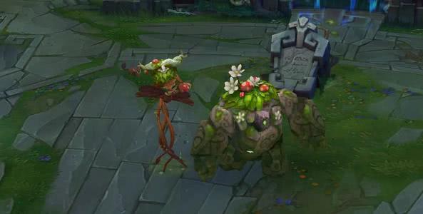 而小菊既然是女生,其实官方也有在召唤师峡谷当中为她设立了一个CP,不过这个石头可不是墨菲特,而是蓝BUFF苍蓝雕纹魔像,毕竟石头人在背景中的体型和小山一样,可比小菊大太多了。