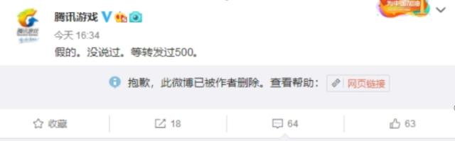 《刺激战场》返场的这个消息迅速传遍网络,很多玩家都去腾讯底下确认这件事的真实性,而腾讯官方直接转发造谣刺激战场返场的微博说:假的。我们可没说过,等转发过500直接举报造谣哦~