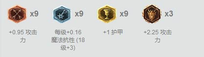 符文选择红色9个攻击力,黄色9个护甲,蓝色9个成长磨抗,大精华3个攻击,皇子的输出都是AD输出,攻击力可以帮助皇子在前期提升作战能力,双抗可以提高皇子对拼能力。
