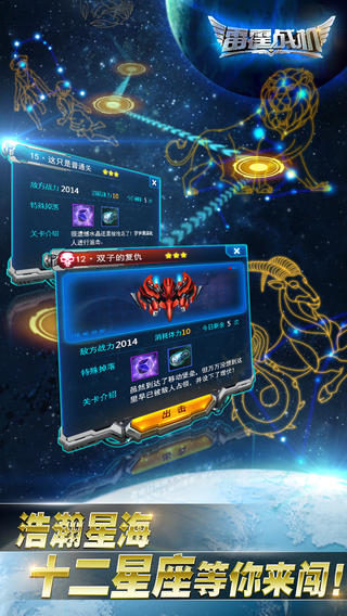 (2)十二星座空前战役,剧情跌宕起伏雷霆战机充值,关卡无限体验