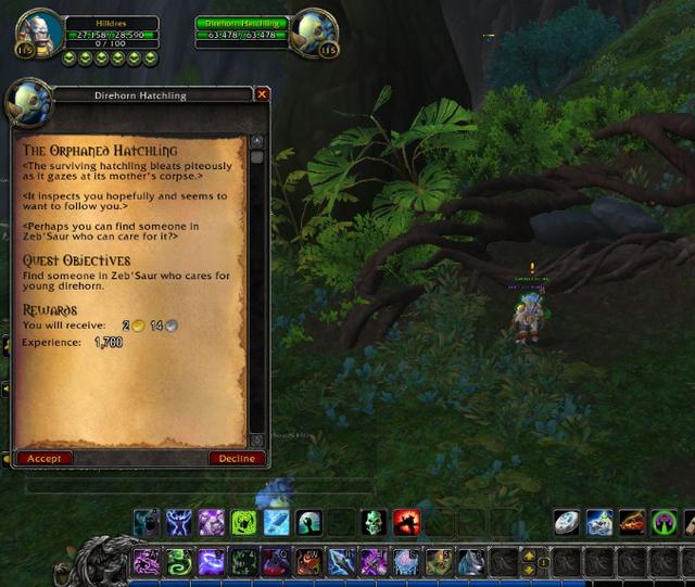 然而过了一段时间后,恐角龙却发生了不良反应,又缩小成了幼兽状态。这种反常现象让赞达拉巨魔大为光火,你和地精都被赶出了大兽栏。