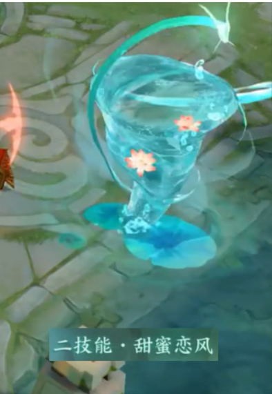 青蛇二技特效为蓝水龙卷。水龙卷下有蓝色的荷叶,水龙卷上有莲花。这不是大乔放的莲花吗?水龙卷里有一条绿色的大蛇。我觉得水全是青蛇造的。但是当你看到水龙卷的时候,你觉得你熟悉它吗?
