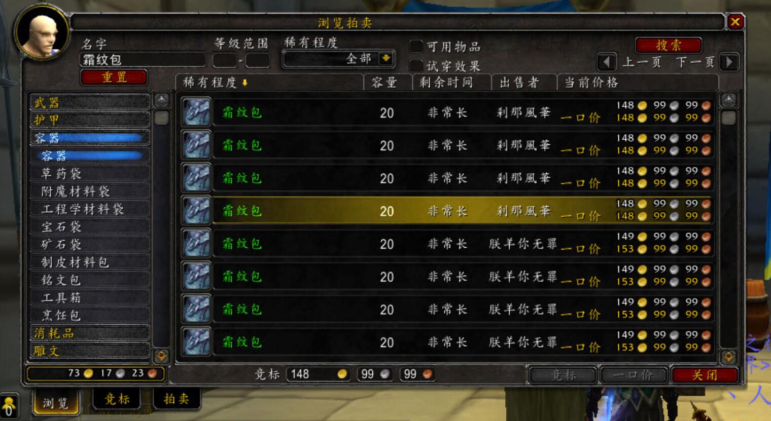 《魔兽世界》现在的拍卖行已经不是普通玩家可以买到东西的地方了,现在更像是一个藏宝阁,里面挂着珍贵稀有的物品,价格也不菲几百或上千金币是很正常的。