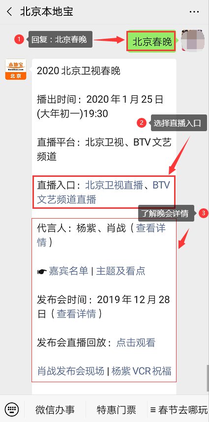 ★温馨提示:微信搜索关注北京本地宝公众号,在对话框回复北京春晚可获取2020北京台春晚代言人、嘉宾阵容、播出时间、直播平台、直播入口、发布会、春晚主题和看点等最新消息,回复春晚可获取2020CCTV网络春晚详情及2020央视春晚抢票入口及指南、直播时间、地点、主持人、嘉宾名单、彩排时间、直播入口、节目单等最新消息。