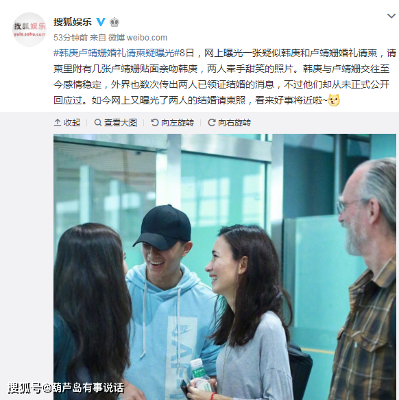早在今年6月份,就有港媒报道韩庚与卢靖姗已经在香港领证的消息,同时港媒还晒出了两人的结婚信息登记书韩庚卢靖姗结婚请柬,上面的名字和出生日期能信息全部都对得上。领证传闻流出之后卢靖姗还曾专门晒了一张戴着婚戒的照片,当时有记者向双方求证时,对于领证的消息,双方团队均未给出正面的回应。