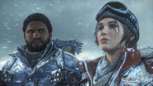 当然了,这不是说神秘海域就不如古墓丽影9,只不过二者的风格不同,神秘海域很多关卡设计,无论场景、解谜、战斗等,整体上要优于古墓丽影重启系列。。除此之外神秘海域的好处是德雷克在很多时候都有同伴可以说话互动,一个长者,一个伴侣,都是常用的设定。古墓丽影绝大多数时间都是一个人在哪里话痨似的自言自语,而且后面那个搭档朋友,实在有些有碍观瞻,而且亲人不是亲人、情人不是情人,提供不了专业技能或者是火力输出方面的支援,个人认为这种角色设定其实是失败的(下图是劳拉的队友跟德雷克的队友,大家自行体会)。虽然说有很多相似之处,但是神秘海域越往后越朝着大场面大制作的大片方向靠拢,古墓丽影其实可以走细腻的剧情路线,像第九作那样,场面并不宏大,但是并不妨碍其中峰回路转。