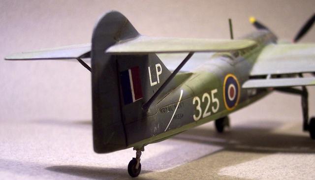 接下来是上单翼对平尾的影响。机翼后方气流是向后下方流动的,如果吹到平尾上,会造成平尾里的升降舵舵效过大——升降舵稍一偏转飞机就会大幅抬头或低头过于敏感,更麻烦的是飞机低头时,这股尾流可能很可能又吹不到平尾上,操作手感和舵效就会忽大忽小。通常的做法是把平尾升高到机翼下洗气流之上。如果是普通战斗机那样的下单翼,平尾只需要比机翼高一点,仍然还能装在机身上。然而“梭鱼”的机翼本来就高,平尾只好再抬到更高的垂尾中间——这里结构比起机身尾部要弱得多,设计师又在平尾下方加了支撑杆。因此“梭鱼”的尾部看起来颇有一战的古风,当然会增加额外的阻力。至于这样不太好看不那么现代化,对不起,英国设计师从不在乎这个。