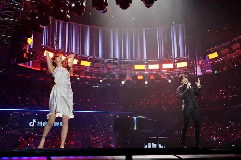 最有意思的是,韩雪和翟天临的组合,俩人将合唱大热情歌《追光者》。