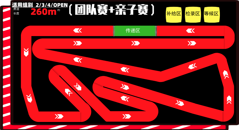 1、每一棒骑手跑完单圈所有赛道后由传递员将参号牌传递至下一轮骑手,未成功传递则不计入成绩;