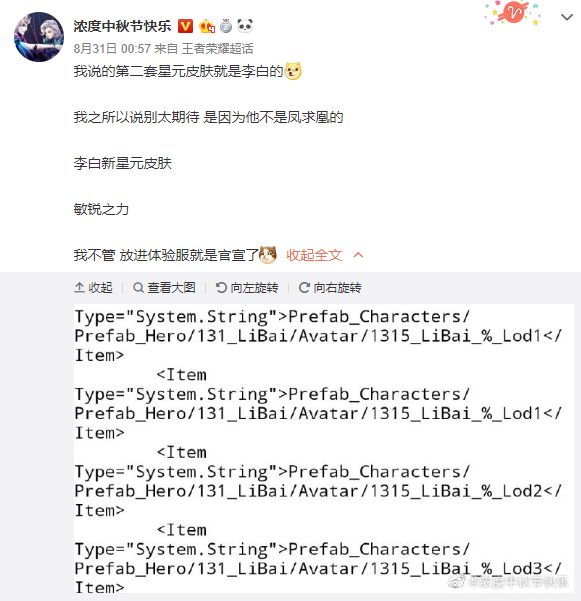 李白敏锐之力优化和星元皮肤资料包已经出现在体验服。