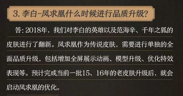 虽然是假想李白凤求凰,但也并非没有可能。联系到马上十月份就要周年庆了,周年庆玩家们最关注的活动内容就是皮肤返场,凤求凰这款皮肤返场的呼声一直很高。要是在返场前说优化了凤求凰,不正是刺激用户去购买这款皮肤吗?