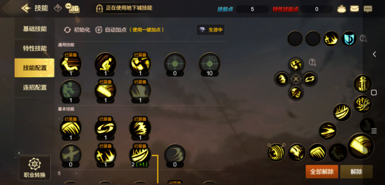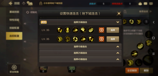 相对于阿拉德之怒星罗棋布铺开半个屏幕的技能按键排列,DNF手游显得更加简洁明了,同时在操作上更为人性化,并且还有独特的连招配置系统: