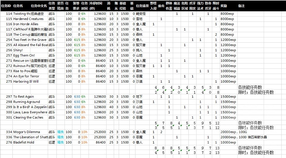 然后对所有带限时战斗的任务进行统计:
