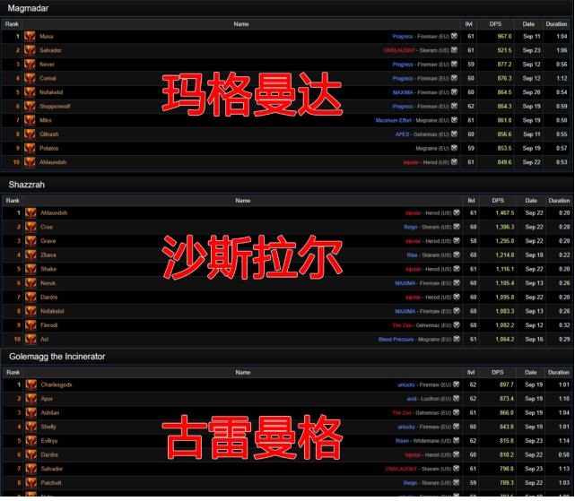 怀旧服最新DPS排名