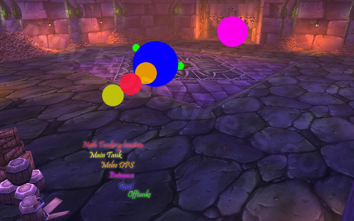 上图红点为诺斯,黄点为坦克,橙色和蓝色区域为团队位置,绿色小点为副坦克位置。紫色区域是区域入口处。