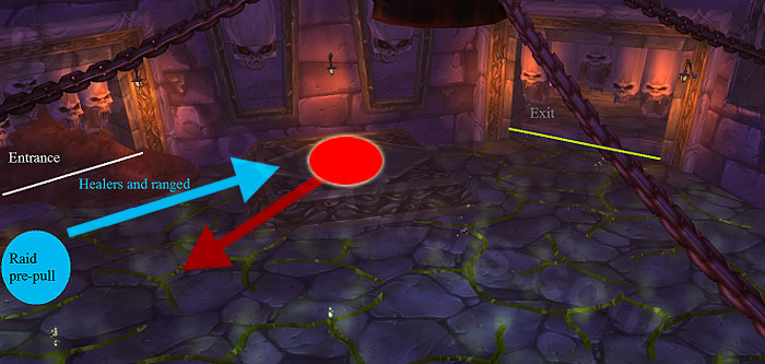 坦克跑进房间,将洛欧塞布控制在房间的中央,猎人也要误导以维持仇恨。按照下图所示站位。