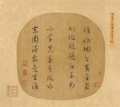 宋高宗草书黄庭坚《戏答王观复酴醾菊》 “谁将陶令黄金菊,幻作酴醾白玉花。小草真成有风味,东园添我老生涯”
