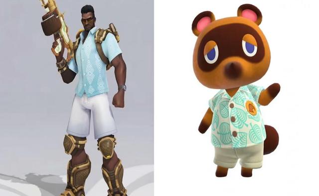 除了和东京奥运会的梦幻联动以外,其实这次的新皮肤还隐藏着和《集合啦!动物森友会》的关系呢!先说说奥丽莎的新皮肤吧,整个身体不管是从左看右看还是上看下看都是冰淇淋的造型,最后看看奥丽莎的头顶是不是顶了一个奶油+樱桃,这和动森里的草莓犀牛造型一模一样。然后说一下巴蒂的新皮肤,夏威夷度假风的衬衫还有清凉的短裤,最后加上黝黑的皮肤,他就是狸克,不,他就是巴蒂斯特!看了看他们两者拼接在一起的图片,是不是一模一样呢?果然,玩梗,暴雪还是老江湖啊。