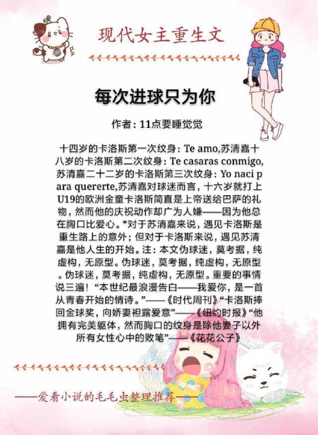 小短评:此文女主重生家世很好,机缘巧合下认识了贫穷但热爱足球的男主,然后帮他走上了足球训练的道路,在男主低谷的时候各种帮助他,两人青梅竹马,女主优秀乖巧小公主,男主忠犬,超级萌,围绕着女主转的向日葵,两个人长大后,小奶狗变成小狼狗更好看了!整天的日常就是撒狗粮,甜而不腻,少女心泛滥,强烈推荐!