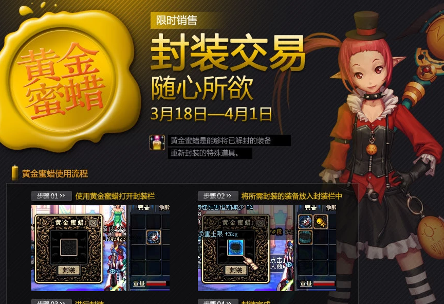 而黄金蜜蜡就是针对解除封装之后无法交易的紫装、粉装而推出的道具。