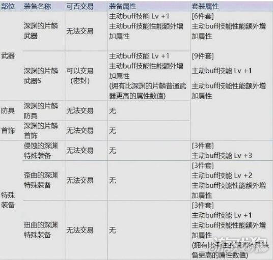 然后就来说说特殊装备的三件套(耳环+魔法石+辅助装备)不同的三种属性加成,第一种侵蚀的深渊暴走套装,暴走技能Lv+3;第二种歪曲的深渊暴走套装,暴走技能Lv+2,暴走技能攻击力增加1.5%;第三种就是扭曲的深渊暴走套装,暴走技能Lv+1,技能攻击力增加3%。以上就是防具武器和首饰及特殊装备的所有效果介绍了。