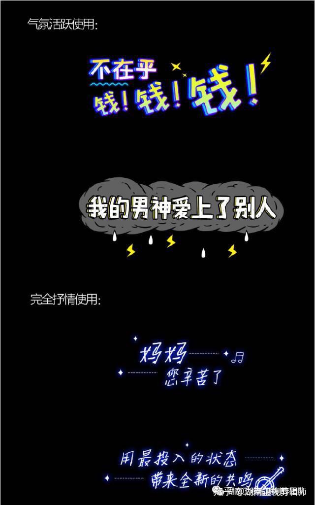 长的情绪花字也分为了两部分:气氛比较活跃时使用的花字以及完全抒情时使用的花字。