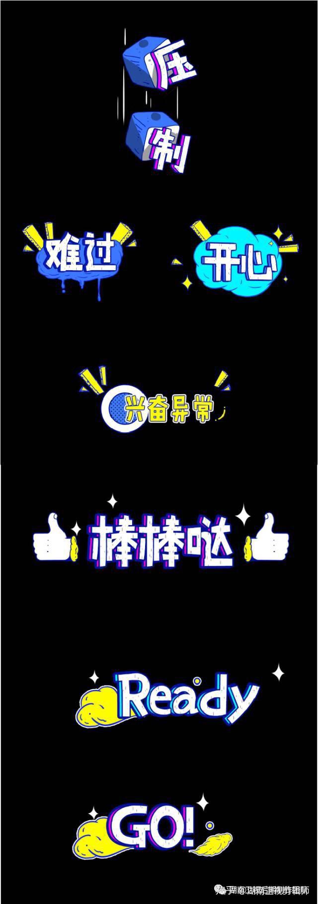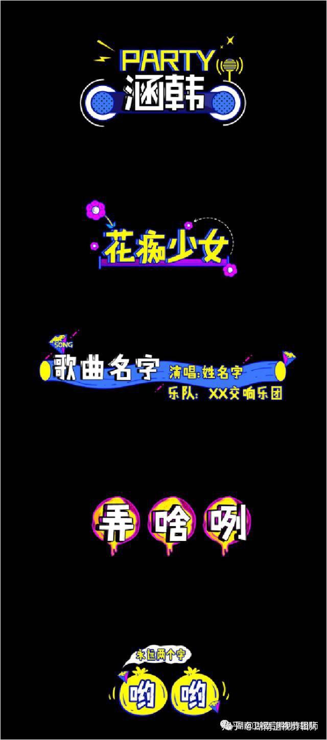 而在第二季中,我们的花字色彩进行了较大的调整,改变成以黄色为强调色,多配以粉色为补充色,使花字更加亮丽,蓝色部分相对减少。