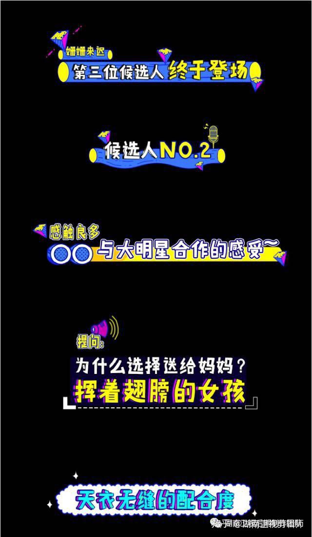 作为解释性字的时候需要表达的信息量也比较大,为了不让画面过于换乱造成对阅读影响以及保持花字的风格统一,设计的时候需要有许多有相同模板下不同长短大小的变体