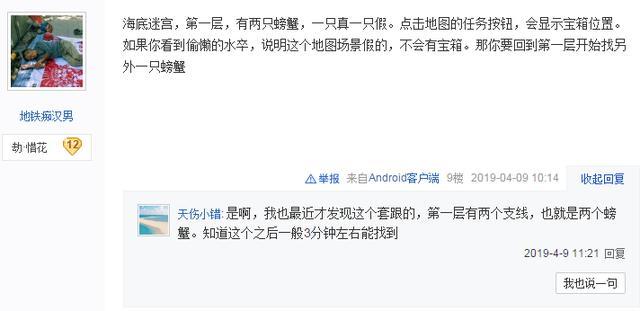 因为找这个宝箱的关键是找第一层地图,在第一层地图中会有两个螃蟹,他们其中一个是真的一个人是假的,辨别方法就是直接点任务寻路就可以找到宝箱的位置,如果你在这个场景周看到了偷懒的水水族那么这个场景就是假的,然后你就需要再回到第一层找另外的一个螃蟹。欢迎关注哪吒游戏网