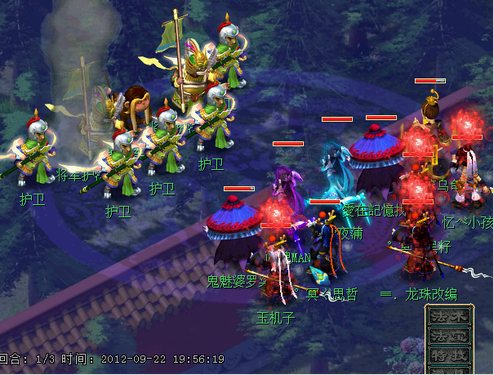 前排天兵门派分别为TG,FC,巡游天神为NV,TG,小怪血量不多,比较怕法,建议法系秒。