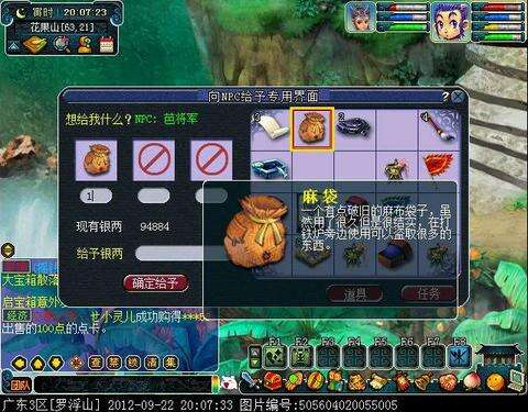 得到这种提示,就可以回到傲来国金毛猿处重新传回花果山找到崩江军给予已经装满盗兵的麻袋梦幻猴王出世,完成任务。