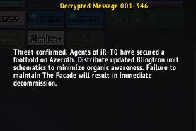 reddit论坛的玩家Macaluso100提供了两张加密的信息截图,分别是001-346和001-398。从文字描述上看魔兽墨迹,布林顿抵抗组织的首领被抓走了,貌似还感染了布林顿5000解码信息001-119里提到的病毒。