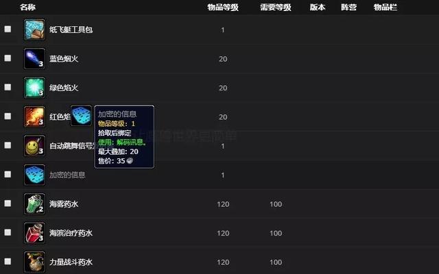 在能开出的物品列表里,加密的信息看上去很特殊,它很像德拉诺之王资料片里布林顿5000礼包开出的解码信息。