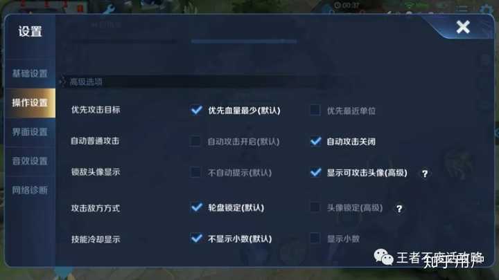 1、操作设置(调出推塔键、优先攻击血量最少目标、关闭自动攻击):