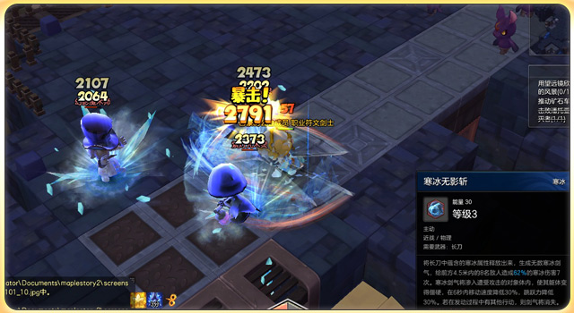 在冰剑流影响下攻击技能多数偏向控制与保护,这里就要好好说说三重飞刀与无影斩这两个技能。