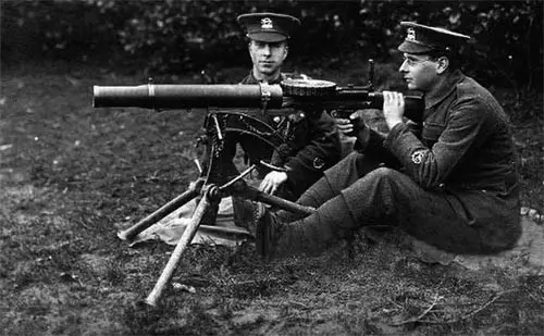 一战中英国陆军装备的一挺安装在三脚架上的刘易斯机枪