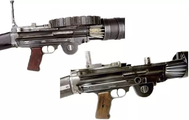 刘易斯轻机枪M1914型(上)与M1916型(下)右侧机匣近照对比图。