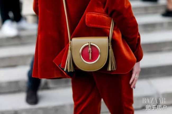 绒面质感的红色套装真的非常非常美,随身斜挎的包包也点缀着红色,气质立马up起来!