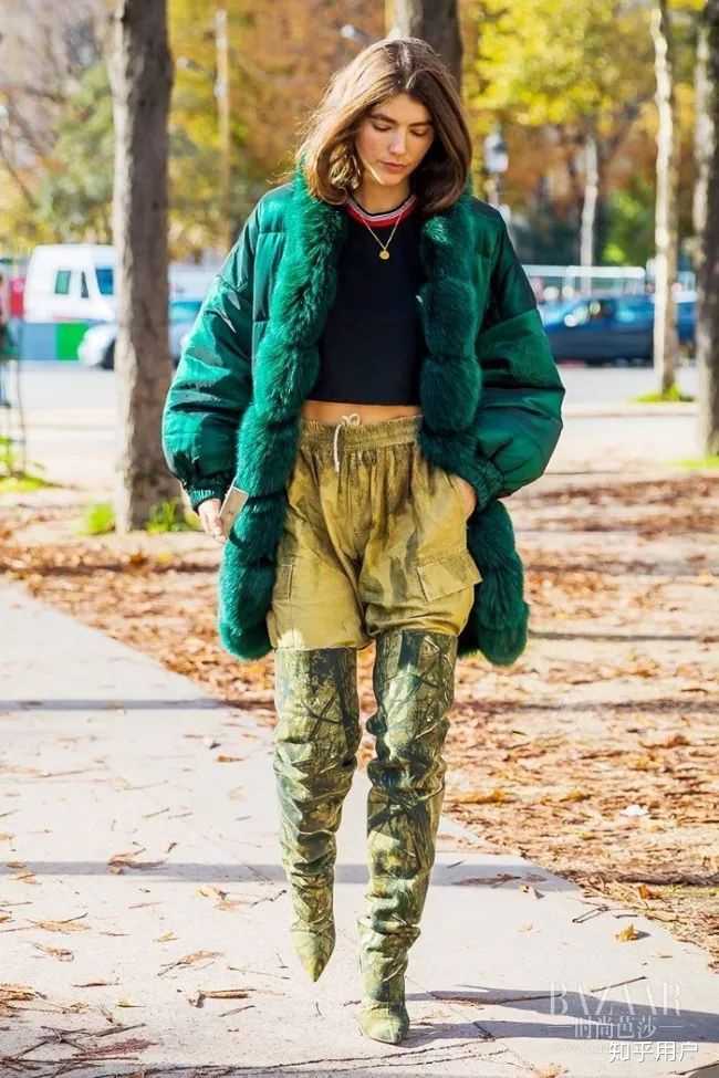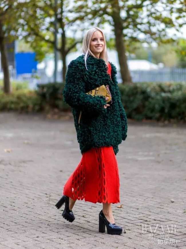 把绿色作为内搭也是点睛之笔,细心地搭上一双红色的鞋子,撞色撞得不经意却又独特!