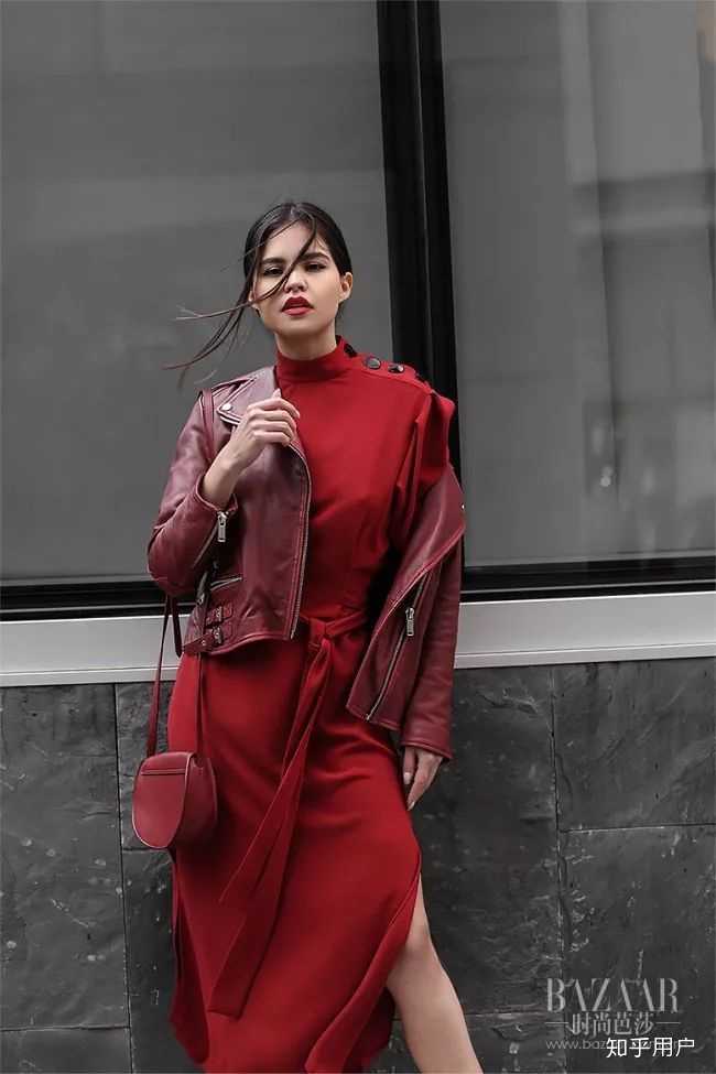 整身红的很难搭配?那你可要学学时髦精们啦,针织长裙搭配夹克外套,不同质感的红色撞在一起不仅层次感十足,也十分吸睛!