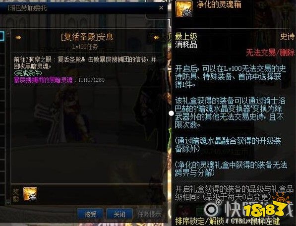 通过洞察之眼任务[复活圣殿]安息获得的装备可以在NPC骑士洛巴赫处使用黑暗灵魂转换器无限进行转换。