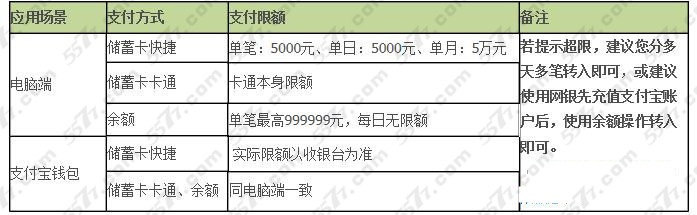 2、转入不支持网银、集分宝、红包、代付、合并支付;