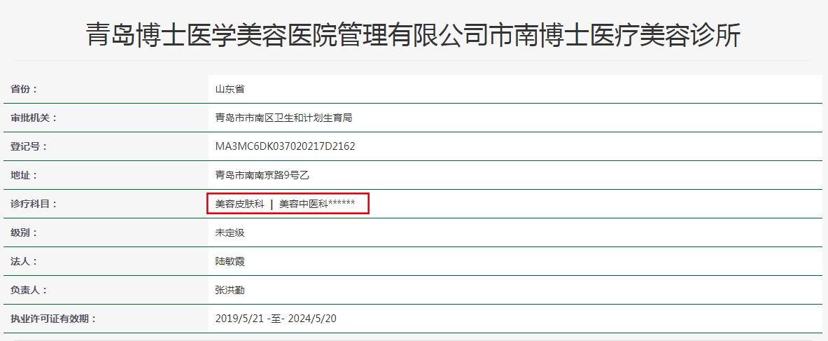 博士有点奇怪,诊疗科目只有美容皮肤科和美容中医科?